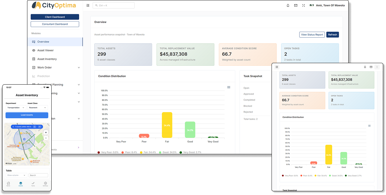 Welcome to CityOptima – where cutting-edge technology meets municipal asset management. Harness the power of GIS-centric data analysis and AI-driven insights to enhance your city’s infrastructure management. Experience unparalleled efficiency and data-driven decision-making with CityOptima.